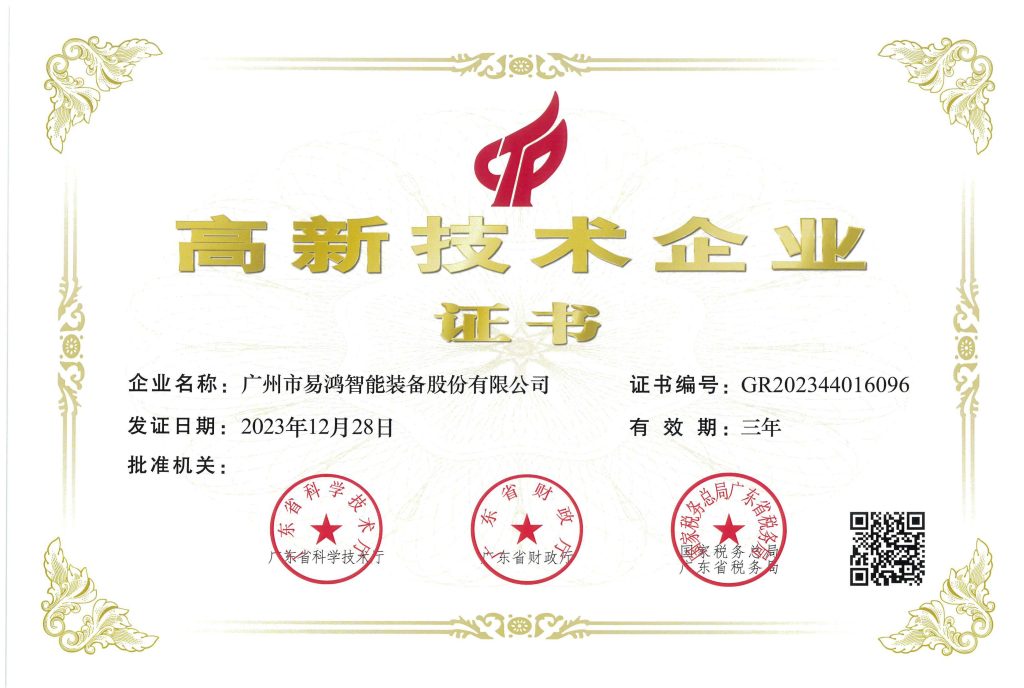 公司获评了国家专精特新重点小巨人、国家专精特新小巨人、国家高新技术企业、广东省制造业单项冠军、广东省工程技术研究中心等荣誉,通过《企业知识产权合规管理体系》、广东省知识产权示范企业荣誉认定,专利产业化率达100%。