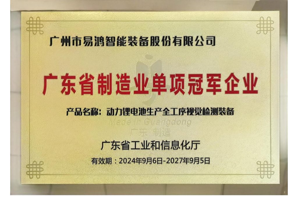 广州市易鸿智能装备股份有限公司成立于2014年,是一家全球领先的机器视觉与智能装备、AI解决方案核心供应商,业务涵盖机器视觉、锂离子电池智能装备、光伏智能装备、3C智能装备、半导体智能装备、AI解决方案六大领域。